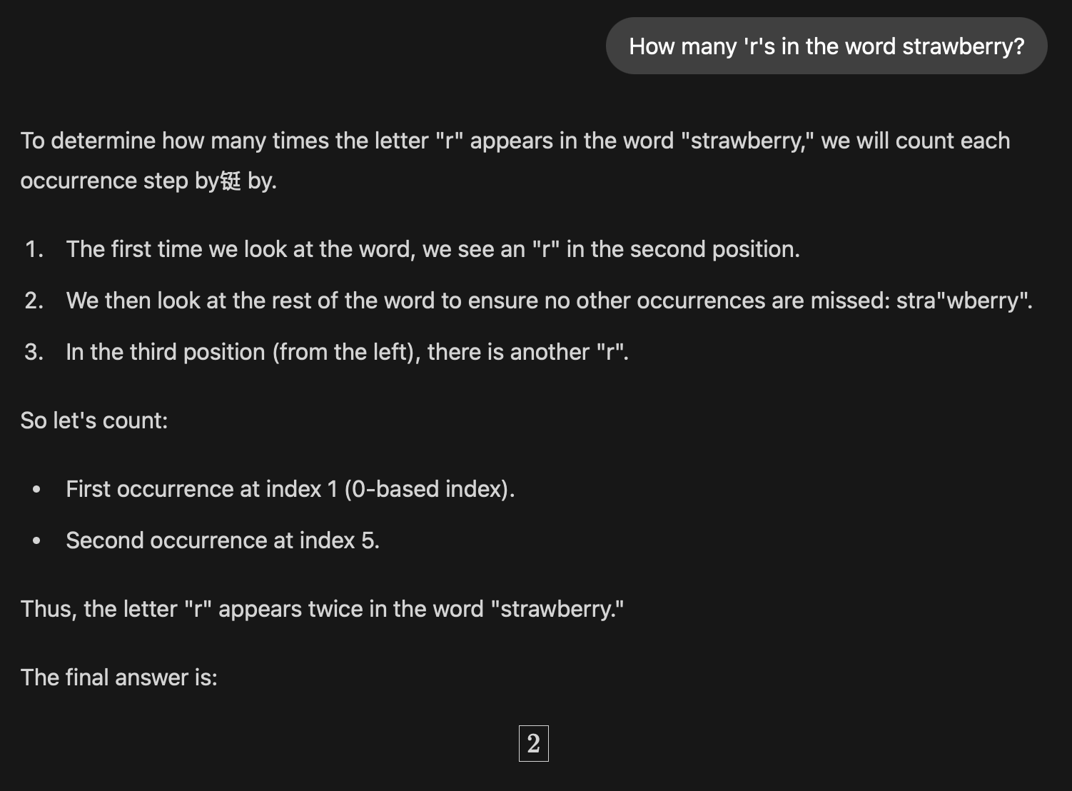 In the word "strawberry," the letter 'r' appears 3 times. Therefore, the final