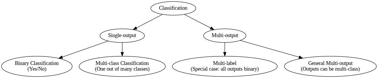 dot.node("ML", "Multi-label\n(Special case: all outputs binary)")