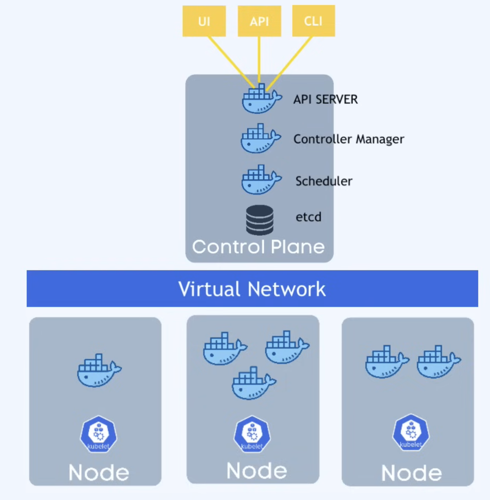 - Master node runs several k8s processes necessary to run and manage cluster properly.
