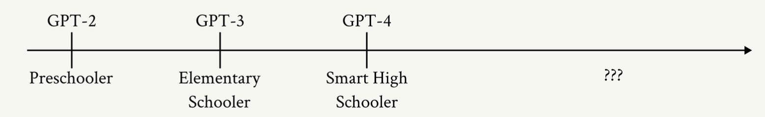 GPT-2 to GPT-4 took us from ~preschooler to ~smart high-schooler abilities in 4 years. So, we should expect preschooler-to-high-schooler-sized-qualitative jump by 2027 by tracing the trend lines in three categories of scale ups: